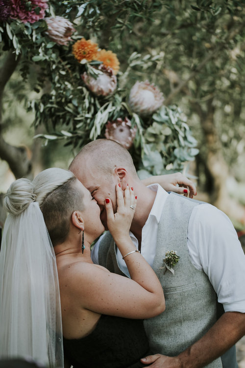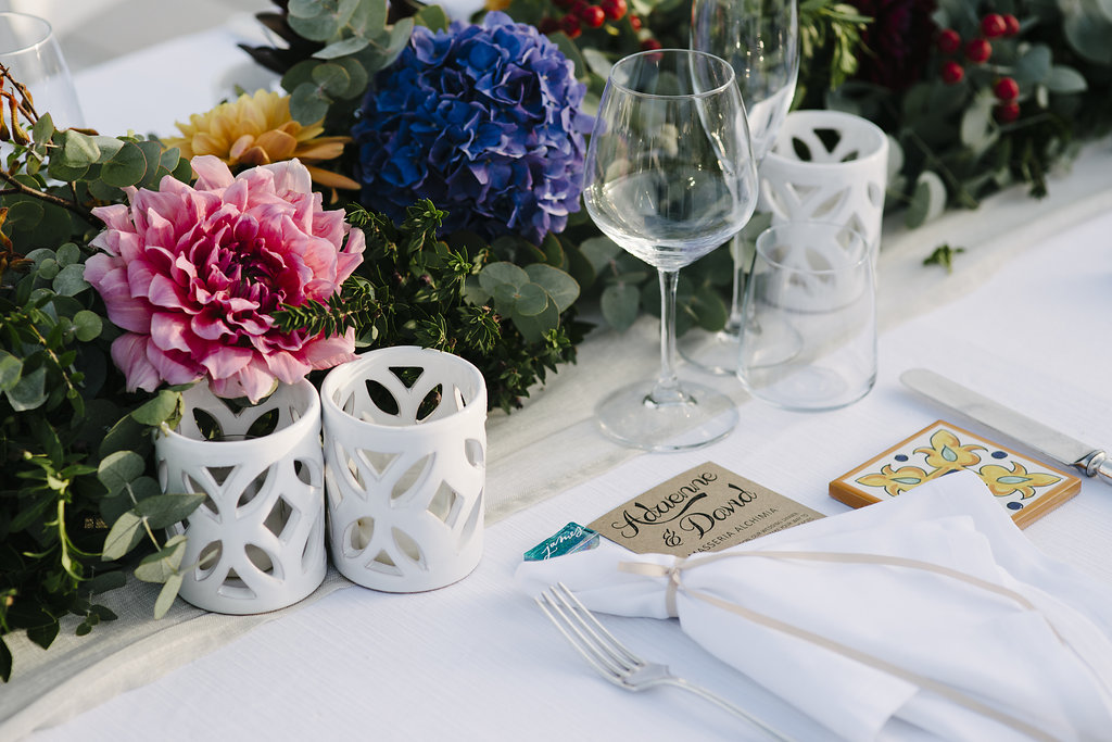 Una cerimonia intima “unplugged” (vietati gli smartphone!), l’outfit della sposa decisamente rock, fiori molto colorati per il centrotavola, un bouquet da sposa fuori di testa fatto con strane piante. Questo sì che era l’allestimento floreale per un matrimonio non convenzionale!Adrienne & David”Rimanete fedeli alla vostra individualità. Non lasciatevi influenzare dalle tradizioni di nozze o da cosa i vostri amici hanno fatto prima di voi. Provate ad ascoltare voi stessi, e fate ciò che rende voi due felici. Ignorate tutto ciò che non vi fa sentire bene.” Adrienne
