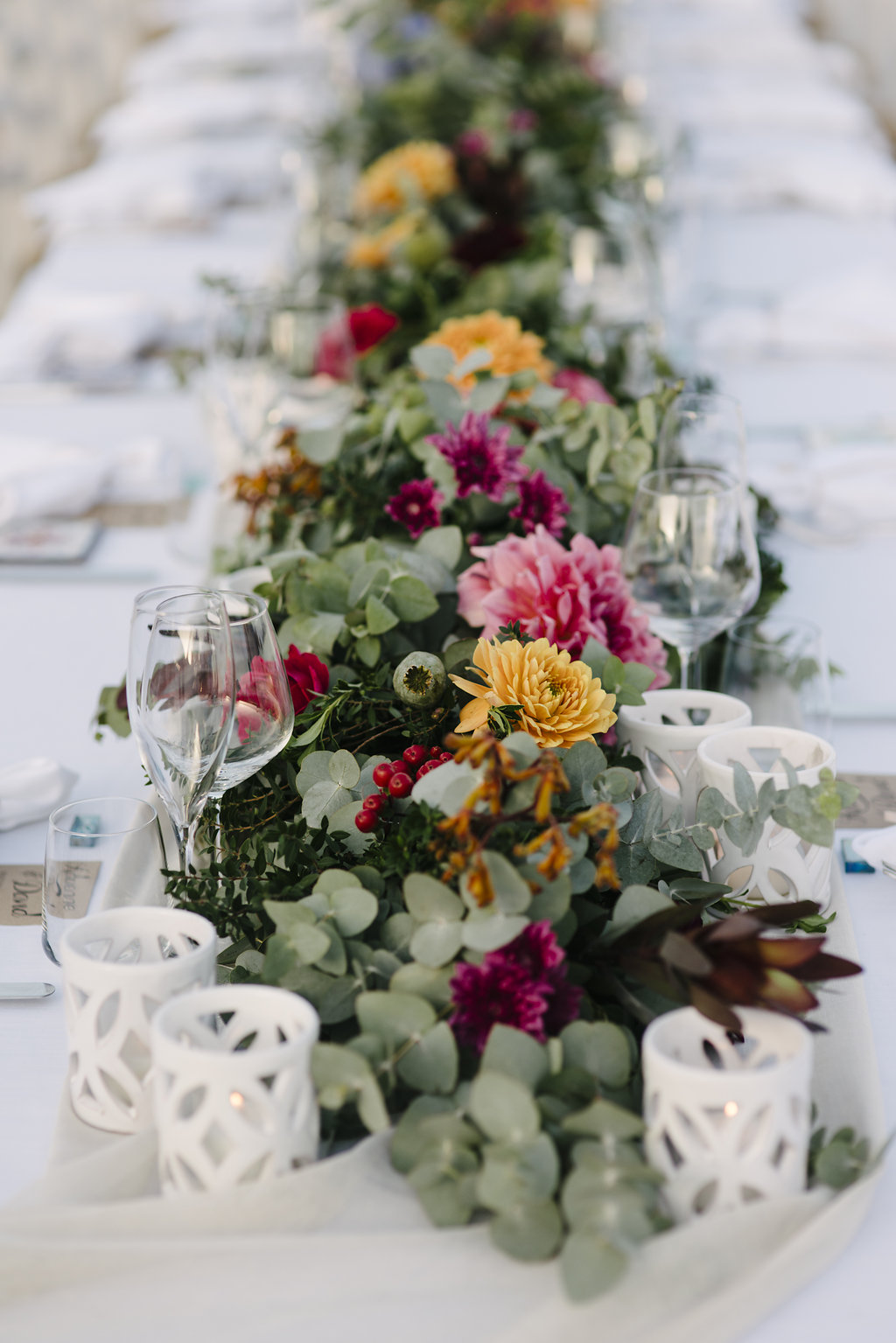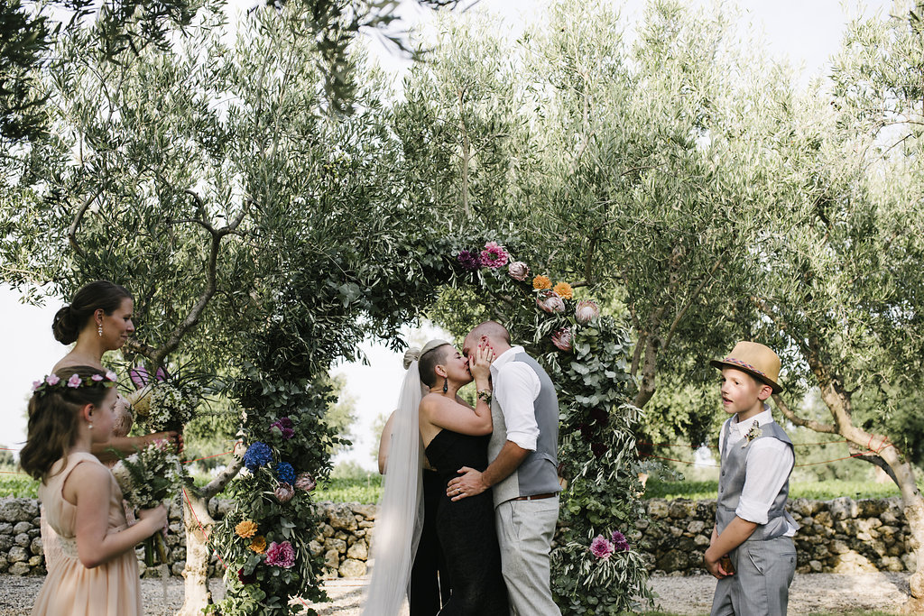 Una cerimonia intima “unplugged” (vietati gli smartphone!), l’outfit della sposa decisamente rock, fiori molto colorati per il centrotavola, un bouquet da sposa fuori di testa fatto con strane piante. Questo sì che era l’allestimento floreale per un matrimonio non convenzionale!